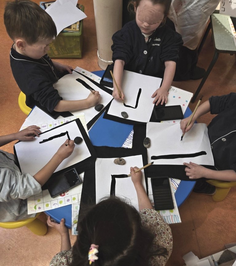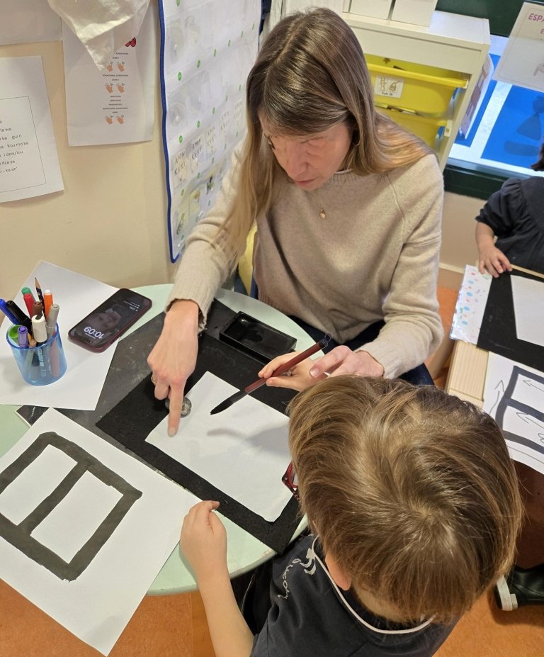 Animation « La calligraphie japonais« , dans la classe de Moyenne Section de Maternelle. Durée 1h45.
